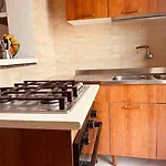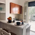 Оснащённая всем необходимым кухня оснащена такими удобствами, как холодильник и духовка.
